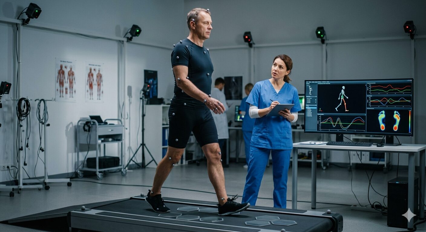 Gait analysis is a method used to assess and analyze the way a person walks or runs. It involves the systematic observation, measurement, and interpretation of an individual’s gait pattern, including the movement of various body parts and the overall biomechanics of walking or running. Gait analysis can be performed for various purposes, including evaluating normal walking patterns, identifying abnormalities or deviations, and guiding treatment or interventions for individuals with gait-related issues.